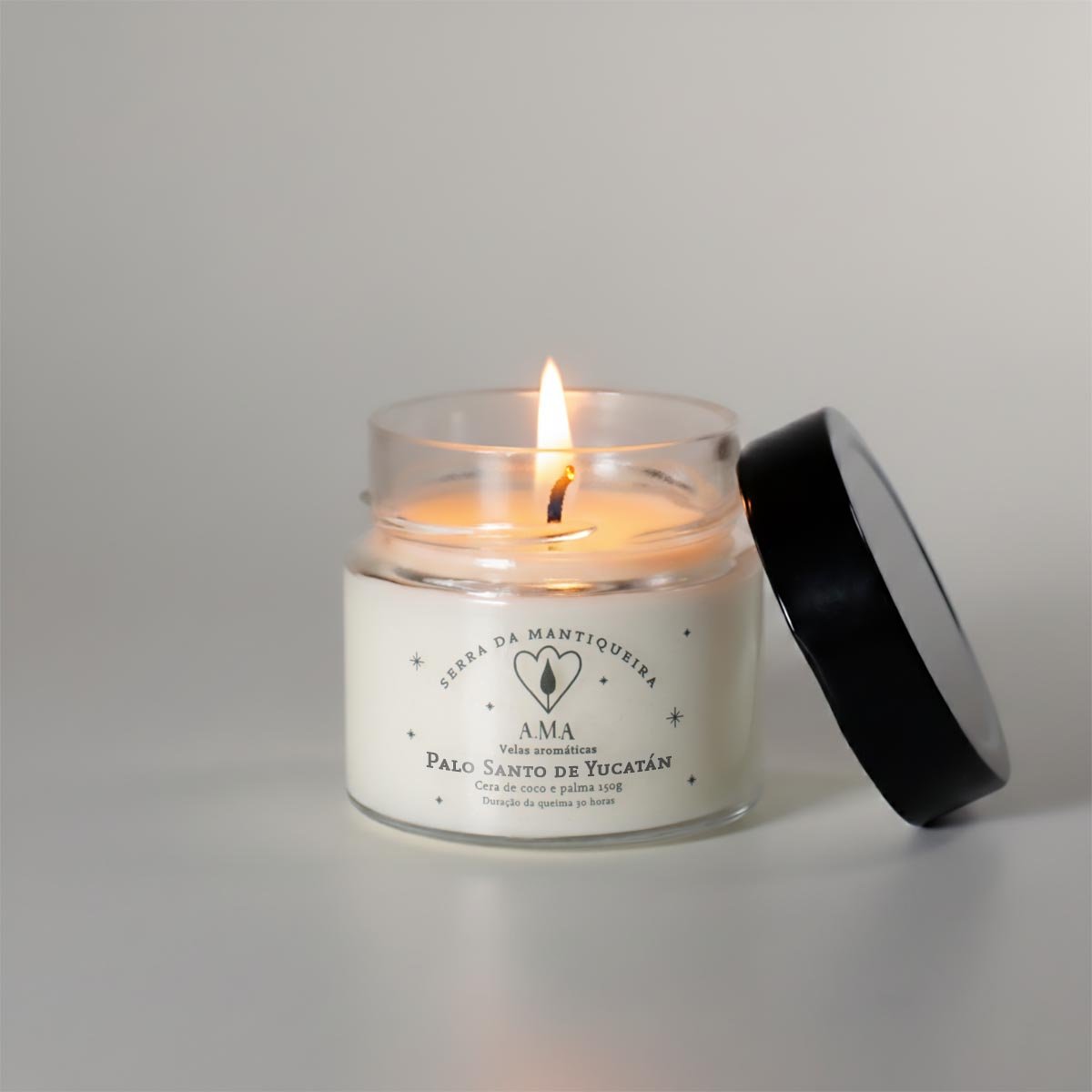 Produto Vegano, produzido sem parafina e com ceras 100% vegetais de coco e palma. Nossas velas são sustentáveis e oferecem queima limpa, sem fuligem tóxica. Nossos pavios são de algodão 100% e biodegradáveis.